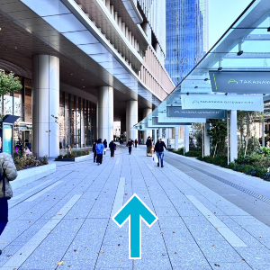 1.高輪ゲートウェイ駅の改札を出たら右斜め前方に進みます。